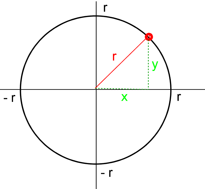 a right-angled triangle. Pythagoras' Theorem tells us that the x-coordinate squared plus the y-coordinate